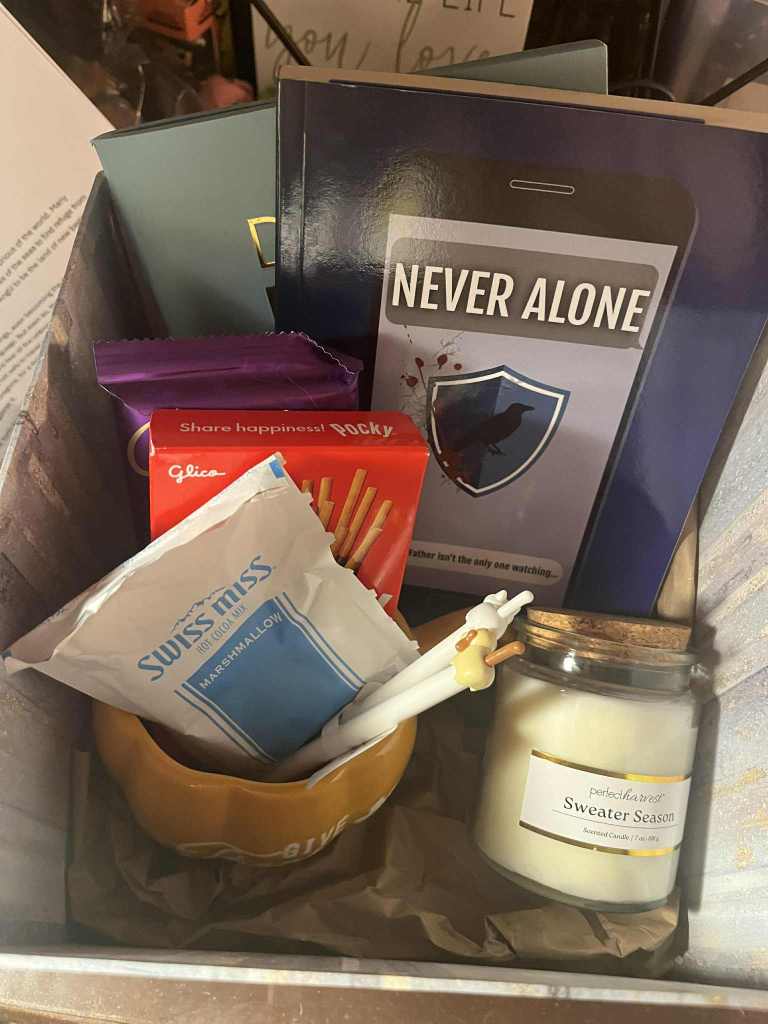 My next event is Pet fest! It is a fundraiser event for the local animal shelter Precious Paws. I adopted my cat, Mrs. Norris, from there, and it means a lot to have a shelter like it around. I have a feeling I probably won’t sell much, if any at all, there, but it’s fine. I will be donating two baskets (well, one is a box). One with Destiny’s Call to Arms, the other with Never Alone. Each will have a candle, mug, and some goodies. Each book is of course signed. I hope to drop those off at the shelter later today. So if you would like to help the shelter and get a chance to win a signed copy of either of my books, here’s your chance!